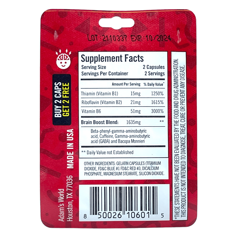 This product is perfectly named. Cheer Up is exactly what you will do when you take one of these capsules. They have some B12 in them, but whatever else they put in there really makes you feel good.