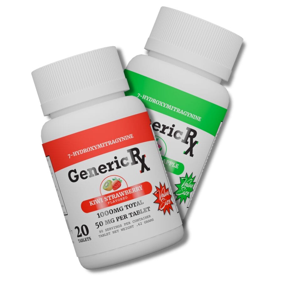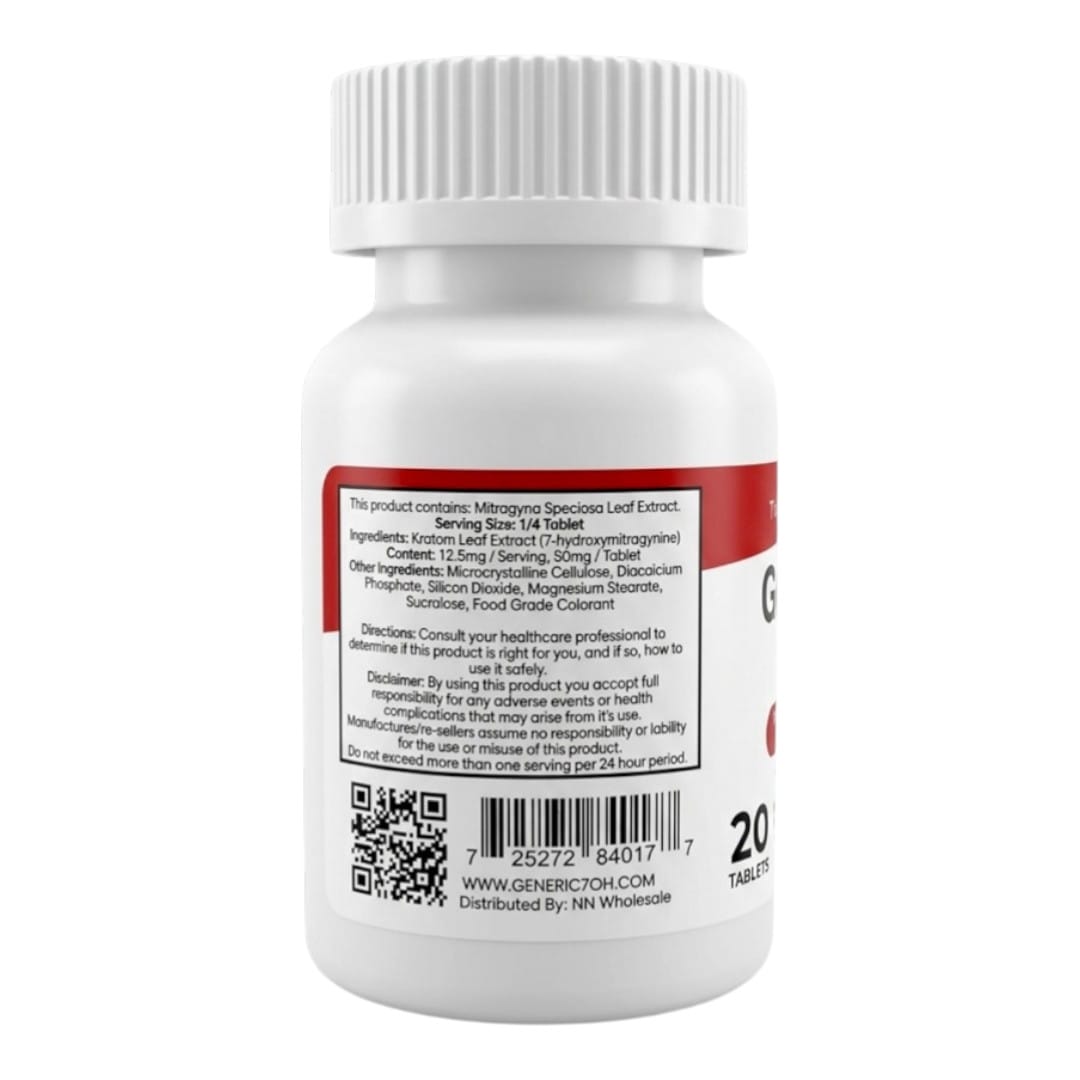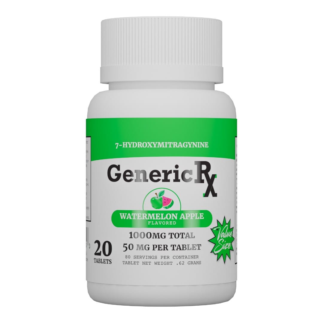 Discover a refined approach to kratom extract formulation with Generic RX 7‑OH Flavored Tablets. Crafted with precision and consistency in mind, each chewable tablet contains 50mg of 7‑Hydroxymitragynine (7‑OH)—a concentrated alkaloid naturally occurring within kratom leaves. This compact format may offer a dependable, convenient way to experience a high‑purity botanical extract without the need for powders or liquid preparations.