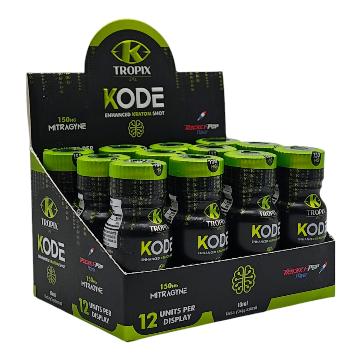 Revitalize your day with K-Tropix KODE Rocket-Pop Flavor Shot in Rocket Pop flavor. This potent 10mL shot, packed with 150mg of Mitragyna speciosa (kratom), offers a smooth, energizing boost without the earthy taste of traditional kratom, making it ideal for those on the go.