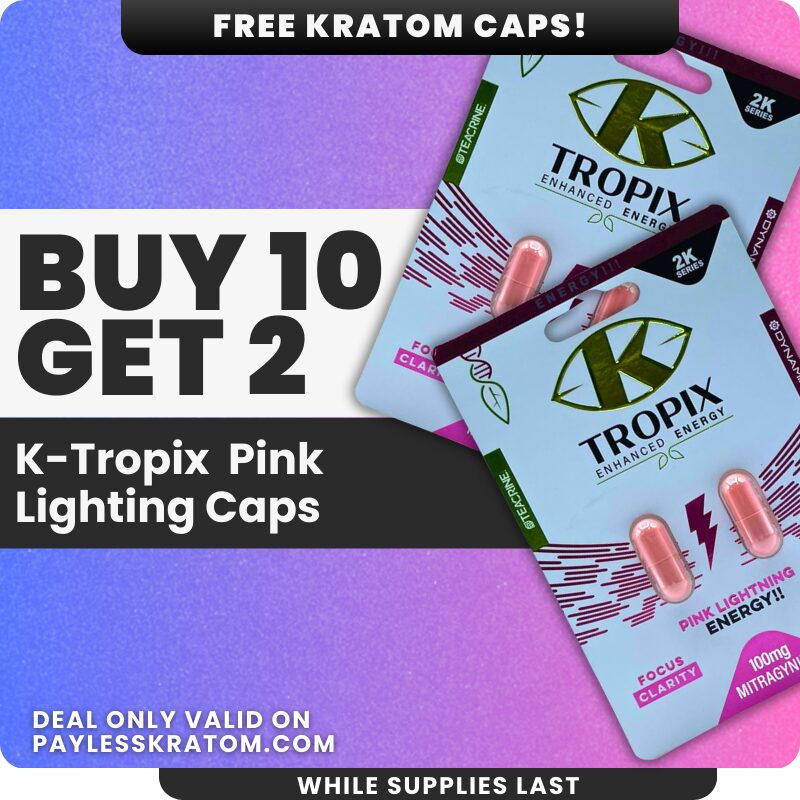 Buy K-Tropix Pink Lightning Kratom Capsules Buy 10 Get 2