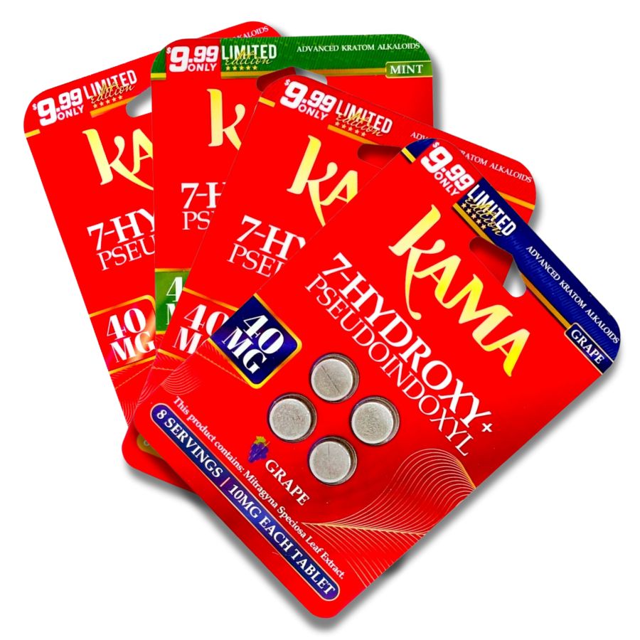 These are some very strong tablets ;-) I’d LOVE for Kama to make an “unsweetened” natural flavor. Or, just have more transparency about their ingredients. I wish they’d list the specific artificial flavors & colors that they use since I’ve noticed these Grape flavored ones tend to give me a headache. I think this is due to the inert ingredients. Might be RED 40? BLUE LAKE? I dunno. To be honest, If you care about your health, I’d keep it moving. If you wanna relax and relieve some pain and don’t care, then by all means, “add to cart.” But, they can be easily habit-forming and are ONLY for users with a HIGH TOLERANCE…they hit hard but the peak doesn’t last very long for me, but I have a high l tolernace. I WILL say that a half of 1 of these “50mg” tablets feels much stronger than a Red 25mg Kama to me. Theoretically, they should feel very similar in strength. These can also create rebound anxiety for me personally and increase tolerance rapidly. I’ll stick to my 7Ohmz ERs. lol