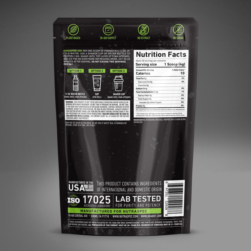 This Krabot Green Maeng Da Push Pop Powder contains no sugar, no additives, and no extract. Just the raw leaf with a tasty flavor profile. Just grab a single serving scoop, add to a tall glass of water, mix and enjoy. Feel free to add ice for a more refreshing beverage.