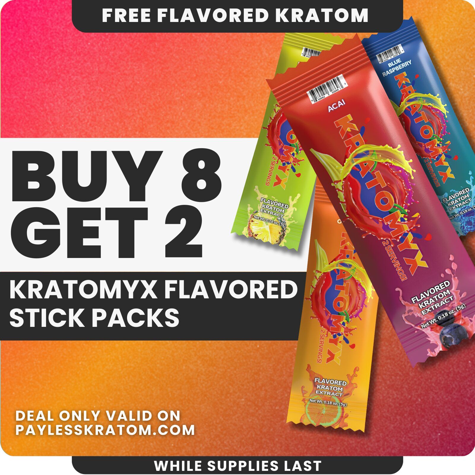 Take advantage of this limited-time offer on Kratomyx Acai Kratom Extract Powder—buy 8 packs and get 2 free. Designed for ultimate convenience, this water-soluble kratom extract dissolves easily and comes in a naturally flavored Acai blend, making it a smooth and enjoyable experience.