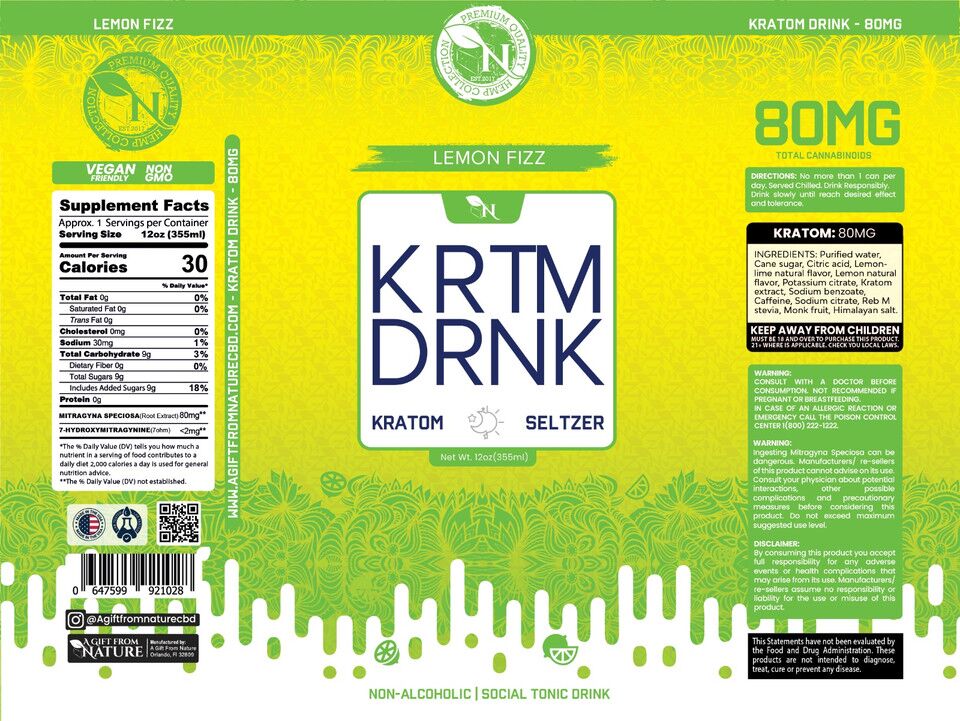 KRTM DRNK Seltzer – Lemon Fizz, 80mg Kratom Extract, 12oz