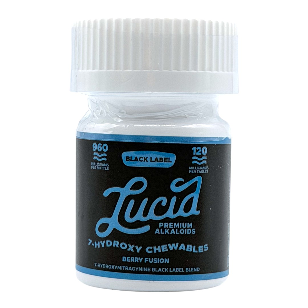 Lucid Black Label 7-Hydroxy Chewable Tablets come in Berry Fusion and Rocket Pop flavors form deliver maximum potency in its purest state, without added taste or sweeteners. Each tablet contains an impressive 120mg of pure 7-hydroxymitragynine, making it one of the most concentrated kratom extract tablets available. This ultra-strength formula is crafted for experienced users seeking consistent, powerful effects in a clean and straightforward format.