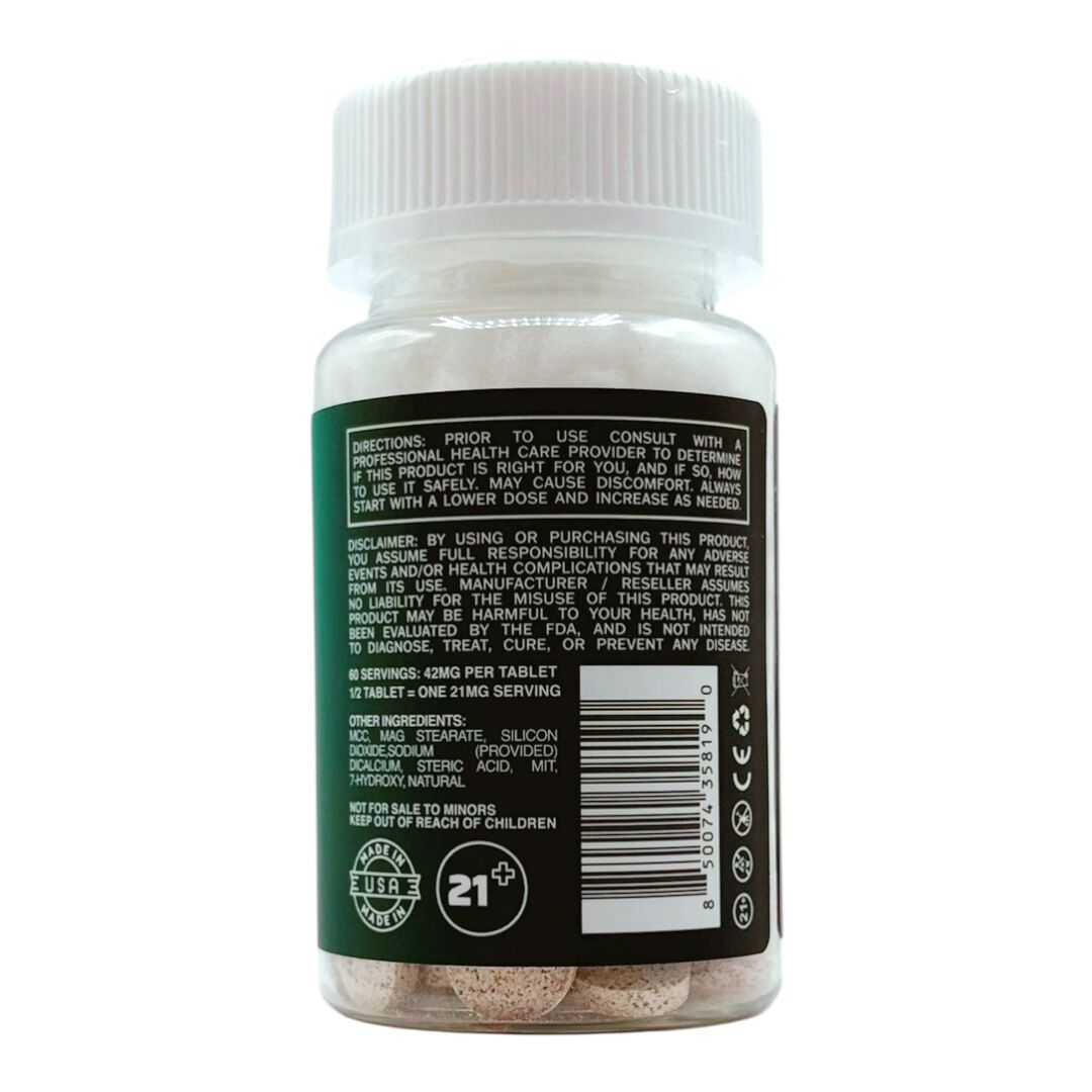 A full 42mg tablet dose of these has less of an effect than a 15mg dose of another product I've used. These spearmint ones also taste good! Almost like candy, which makes sense because there's not very much active 7OH in it to make it taste bad. This bottle probably has closer to 350mg total content.