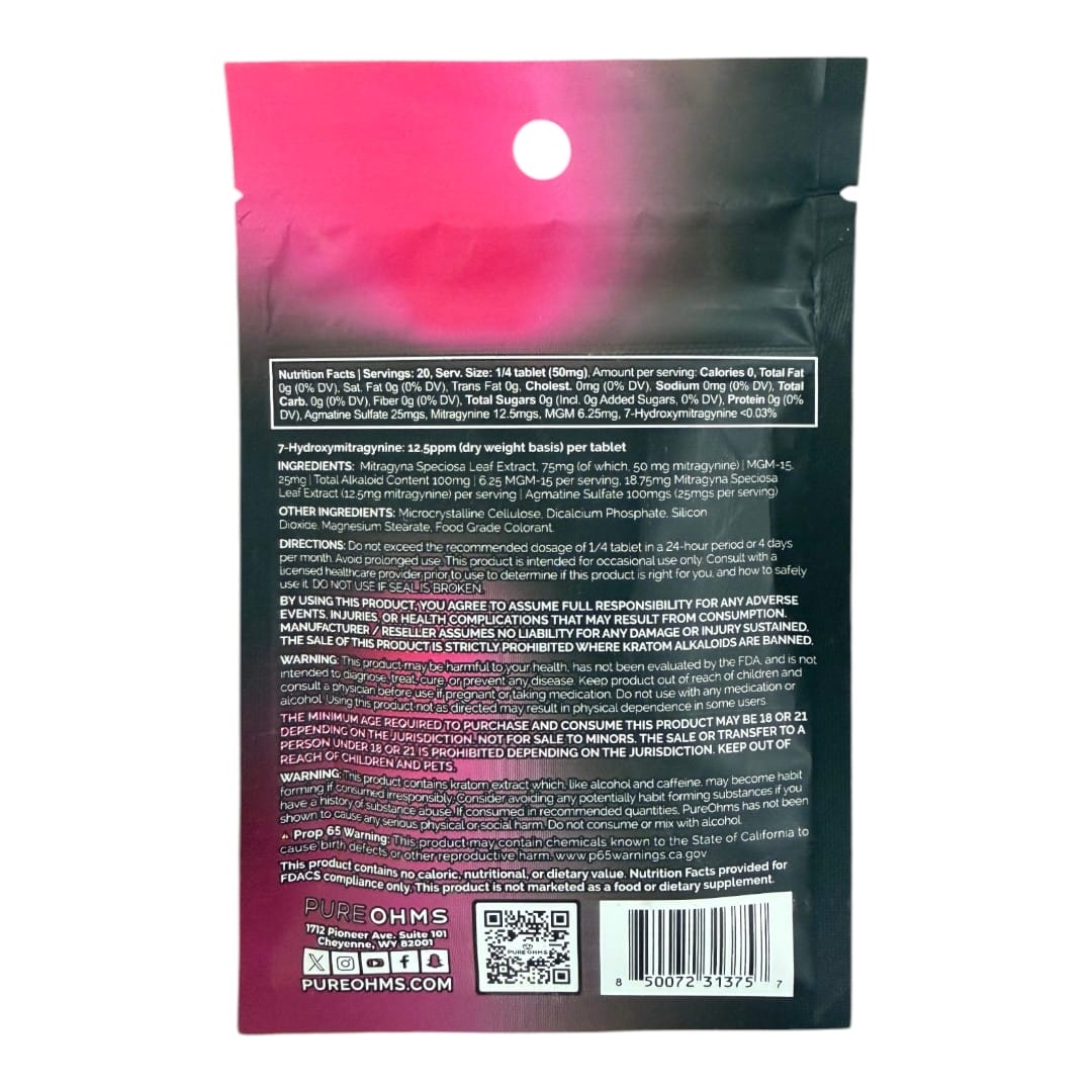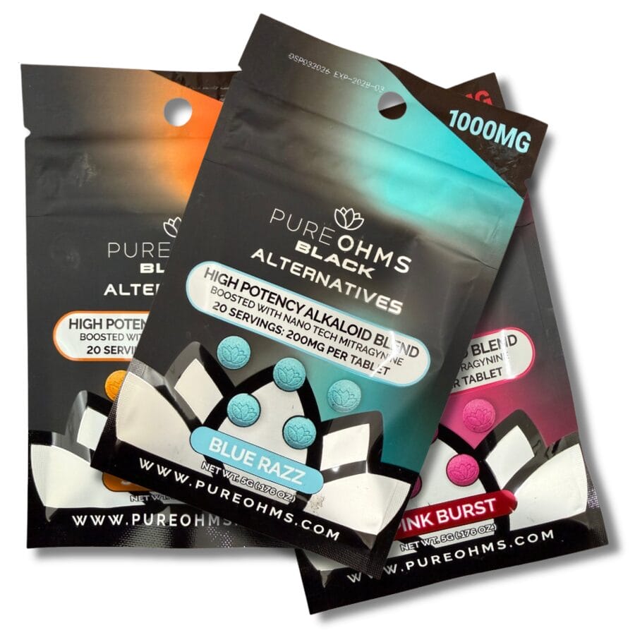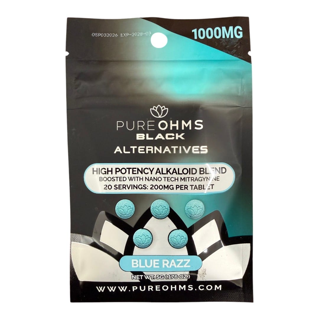 Available in three flavors—Blue Razz, Pink Burst, and Solar Peach—PureOhms Black Alternative Tablets are formulated to help mask the naturally bitter character of kratom alkaloids with bright, fruit-forward profiles while maintaining focus on potency and consistency. The nano-enhanced mitragynine component may support more uniform dispersion of active plant compounds within each tablet, aligning with users who prioritize structured, modern extract formats.