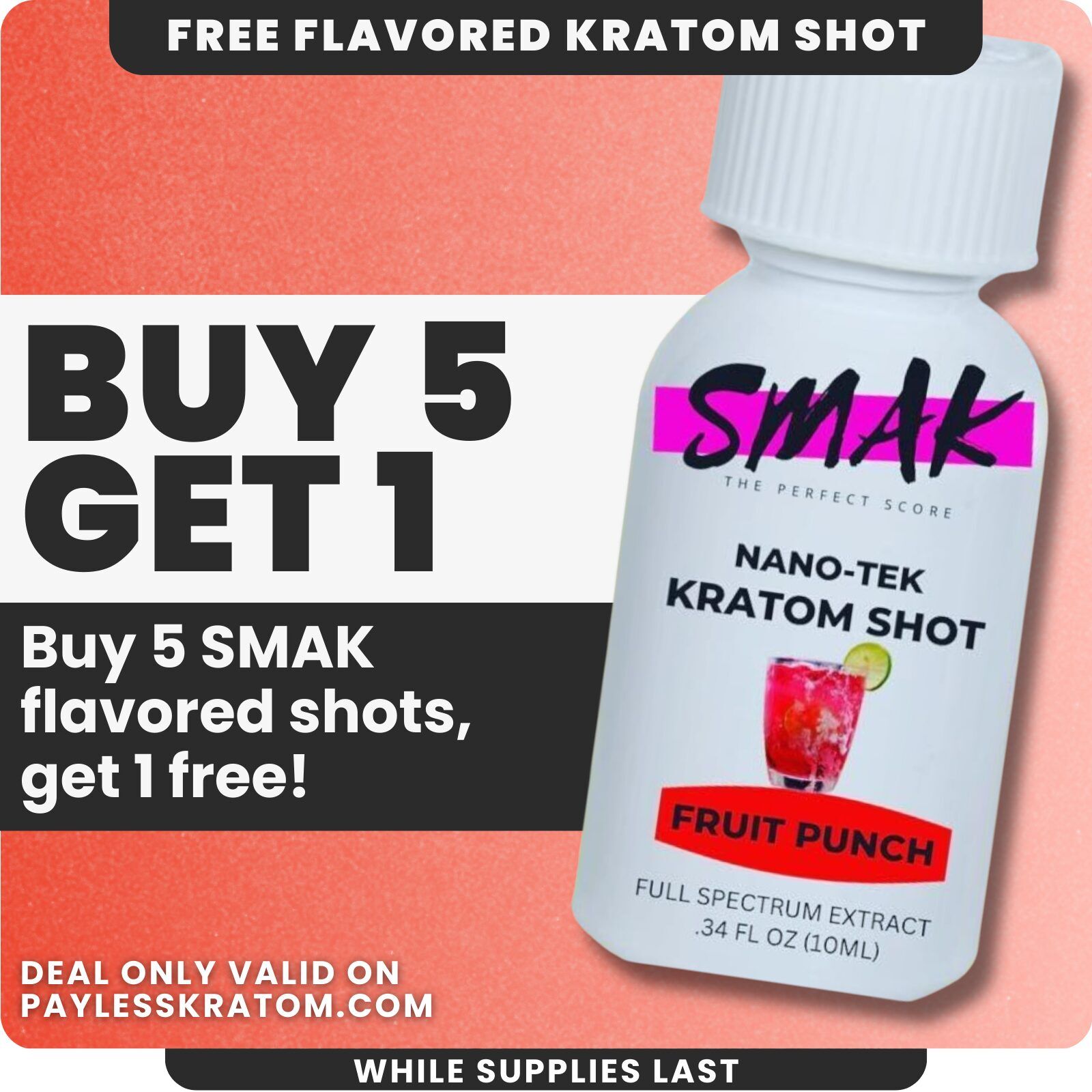 - SMAK Nano Kratom Shot in Fruit Punch Flavor DEAL BUY 5 GET 1