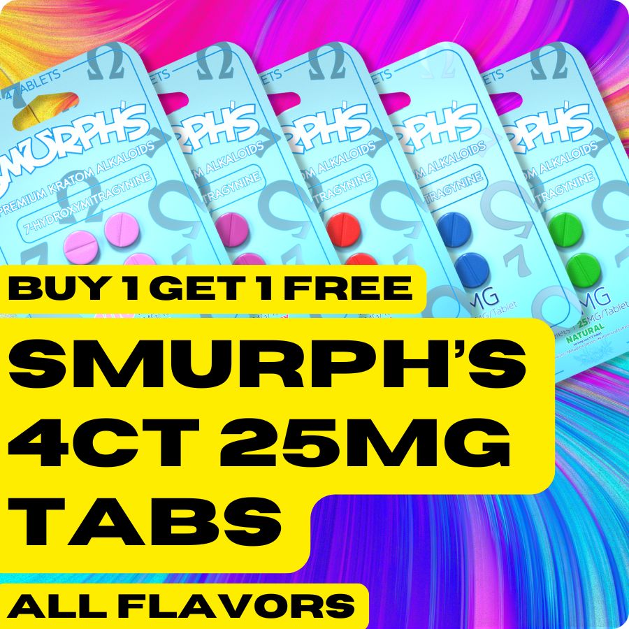 If you’re looking for a strong, hassle-free kratom experience, Smurph’s 7-OH Flavored Kratom Extract Tablets deliver 25mg of 7-Hydroxymitragynine per tablet in a compact, easy-to-use format. No mixing, no mess, just a pre-measured, travel-friendly alternative to powders and capsules.